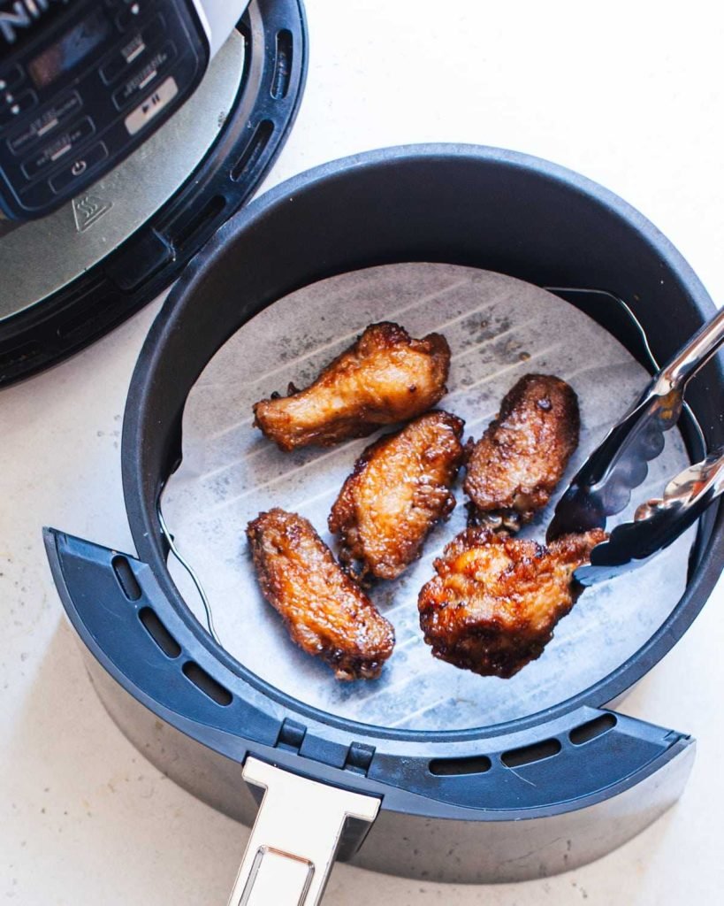 Placing foil or parchment paper at the bottom of the basket helps in easy cleanup. Ensure they do not block air flow. This is especially helpful for sauced wings that might drip or create a mess.